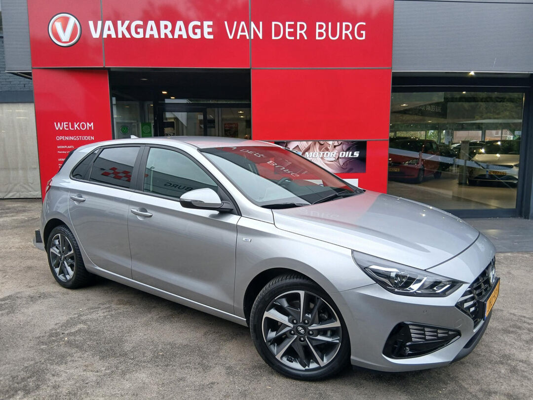 Zeer luxe Hyundai i30 Automaat met stoel- en stuur verwarming, Apple Car Play en Android Auto, climate control, cruise control, achteruitrijcamera, parkeersensoren voor en achter, elektrisch inklapbare buitenspiegels, 17" lichtmetalen velgen met 4-seizoenen banden, donker getint glas achter, aut. dimlicht, USB aansluiting.
